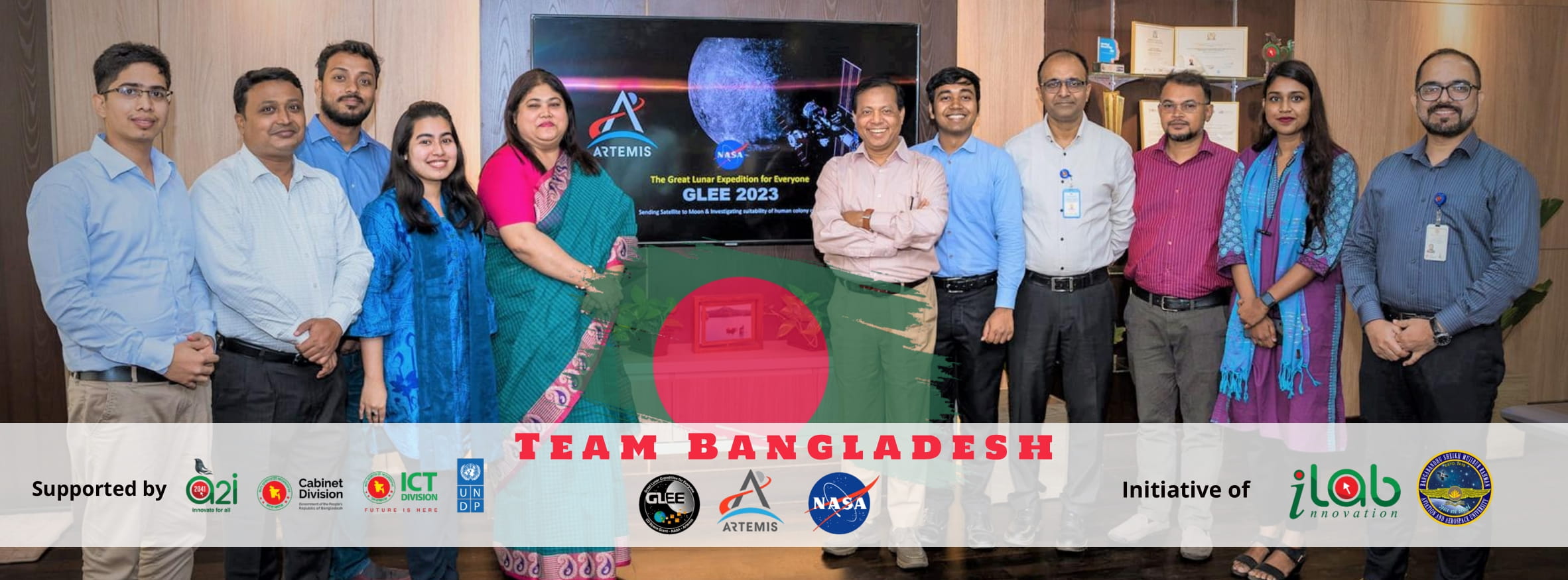 We’re thrilled to represent Bangladesh at the forefront of NASA’s GLEE Mission - a groundbreaking global endeavor to the moon! Through NASA’s Artemis Challenge, we stride into the deep space exploration for the first time ever from Bangladesh. As one of the global team affiliates, we have been assigned to complete rigorous training, plan and design our own space mission, develop and test our LunaSat (lunar satellite), and eventually conduct scientific studies once our configured LunaSat transmits signals from the moon to the Earth station. In Bangladesh, our initiative is being implemented through Government-Academia-Industry collaboration amongst Aspire to Innovate (a2i) Programme of ICT Division, Aviation and Aerospace University, Bangladesh (AAUB) and Walton Television of Walton Hi-Tech Industries PLC. Our multidisciplinary team, composed of over 60 undergraduate and recent graduate students, as well as subject matter experts and researchers, represents more than 20 universities across Bangladesh. These institutions include Dhaka University, Jahangirnagar University, Chittagong University, BUET, CUET, RUET, BRAC, AUST, NSU, IIUC, and others. Together, we are dedicated to take Bangladesh to the Moon!
